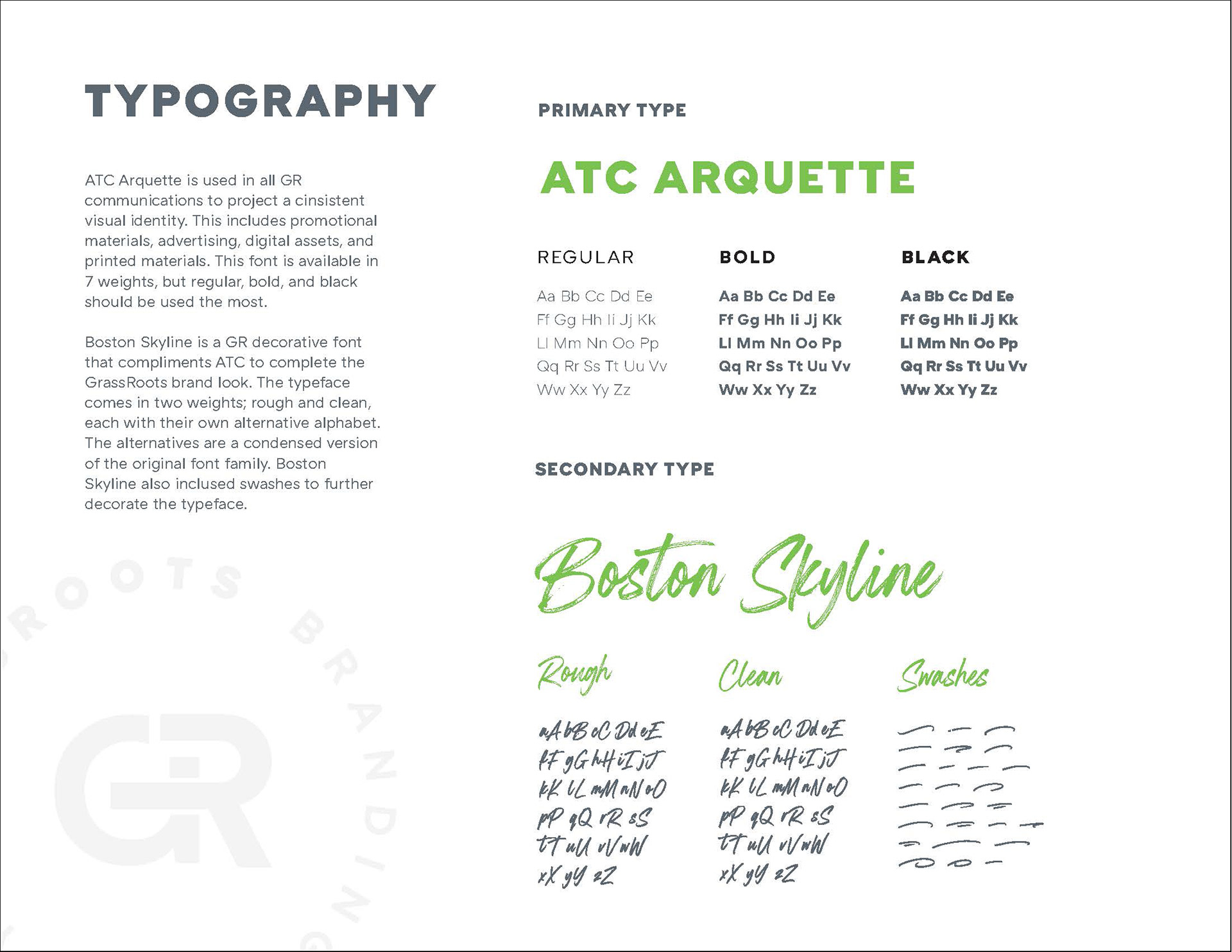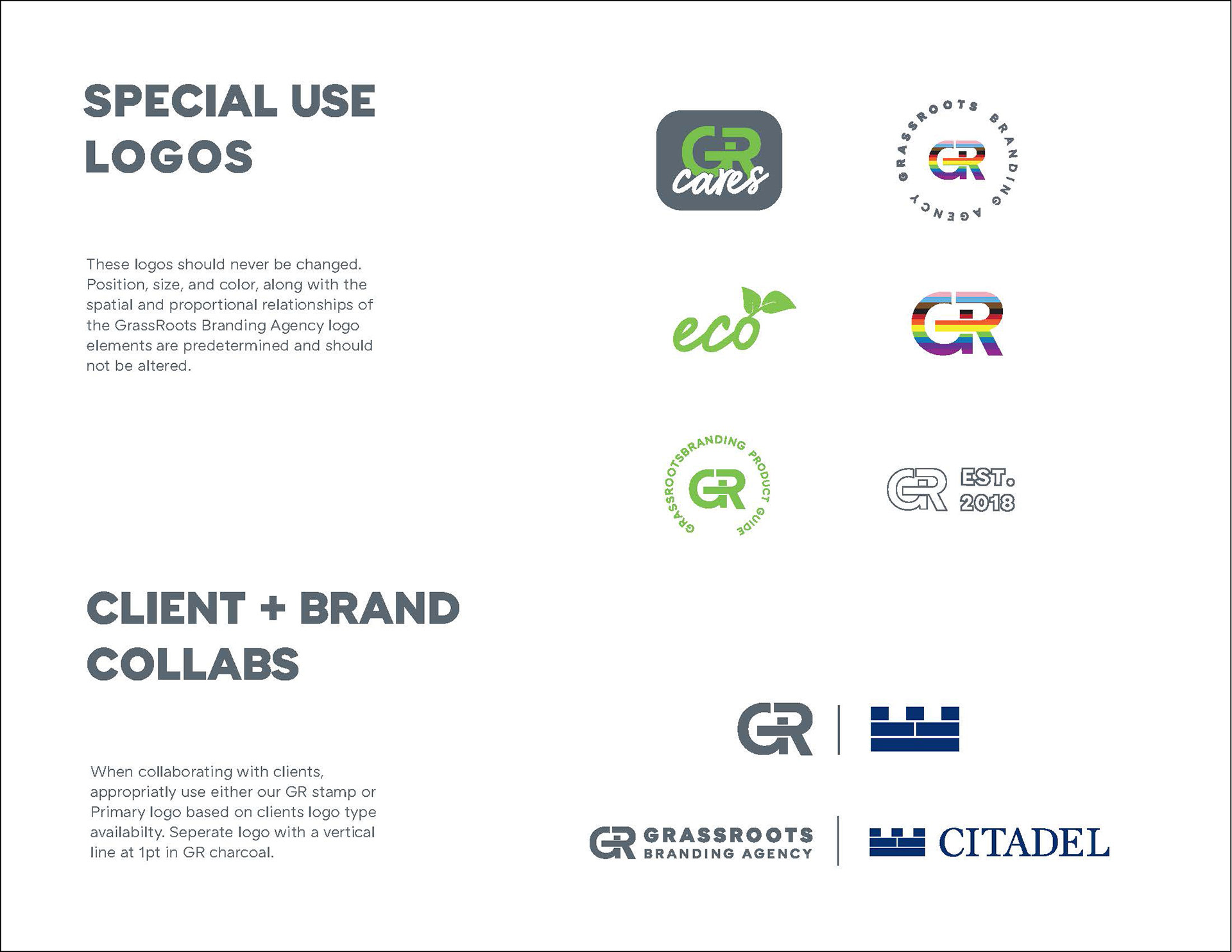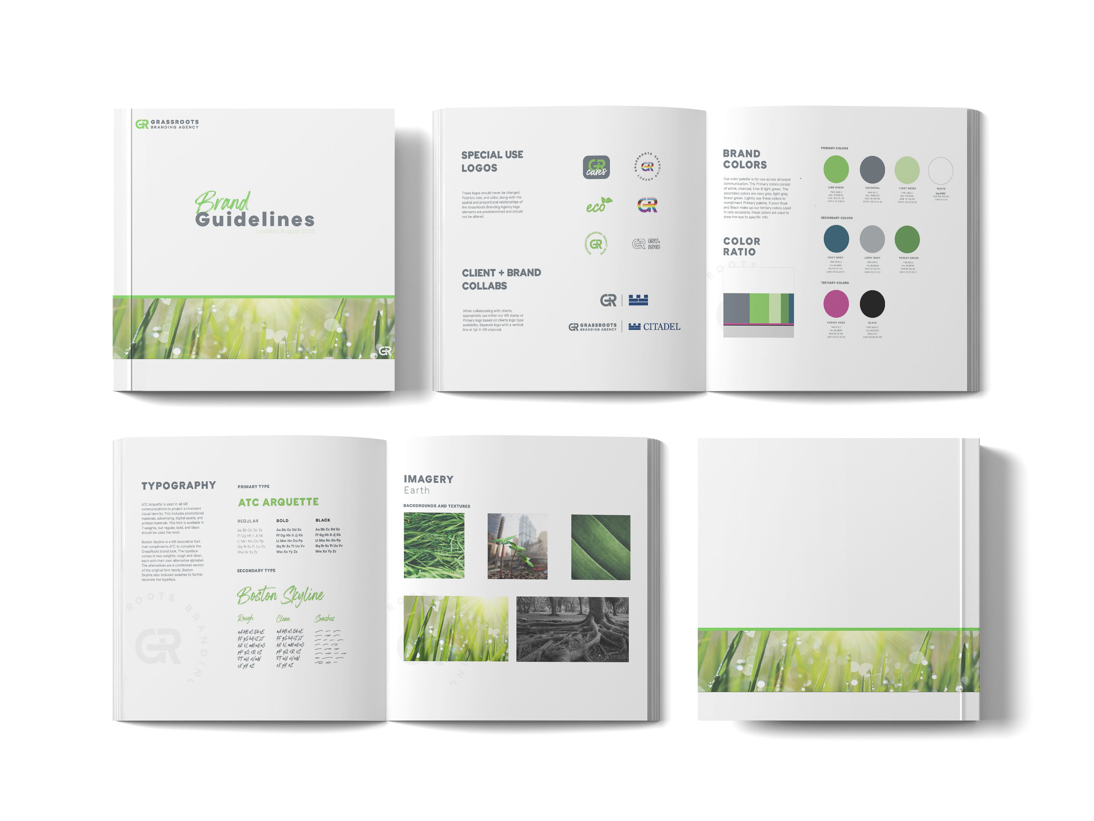 For Grassroots Branding Agency, I spearheaded the Agencies re-brand., expanding logo variations, color palettes, type families and brand guidelines among other assets.