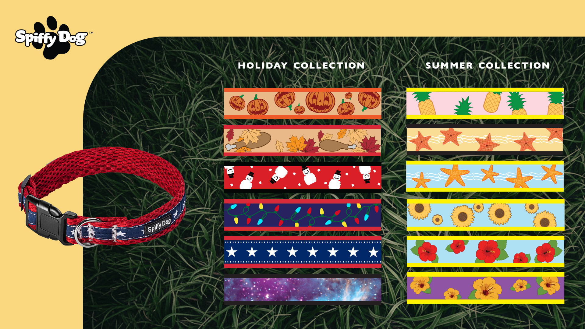 I developed new collar designs with visuals representing holiday and summer seasons. The goal was to appeal to younger clientele with designs that followed modern trends and used fresh, bright color palettes